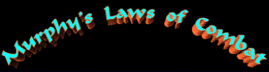 You are not Superman. Recoilless rifles - aren’t. Suppressive fire - won’t. If it’s stupid, but works, it ain’t stupid. Don’t look suspicious - it draws fire. Never draw fire - it irritates the people around you. When in doubt, empty the magazine. Never share a foxhole with anyone braver than you are. You weapon was made by the lowest bidder. If your attack is going really well, it’s an ambush. If you can’t remember, the claymore is pointed at you. All five second grenade fuses are three seconds. Try to look unimportant, they may be low on ammo. If you are forward of your position, the artillery will be short. The enemy diversion you are ignoring is the main attack. The easy way is always mined. The important things are very simple. The simple things are very hard. If you are short of everything except enemy, you are in combat. No OP PLAN survives first contact intact. When you have secured an area, be sure to tell the enemy. Incoming fire has the right- of- way. No combat ready unit has ever passed inspection. No inspection ready unit has ever passed combat. Teamwork is essential, It gives them other people to shoot at. If the enemy is in range, so are you. Beer math is 2 beers X 37 men = 49 cases. Body count math is 2 VC + 1 NVA + 1 water buffalo= 37 KIA Friendly fire - isn’t. Anything you do can get you shot, including nothing. Make it too tough for the enemy to get in, and you can’t get out. Tracers work both ways. The only thing more accurate than incoming enemy fire is incoming "friendly" fire. Radios will fail as soon as you need fire support desperately. If you take more than your fair share of objectives, you have more than your you fair share of objectives to hold. Both sides are convinced they are about to lose- They are both right. Professionals are predictable - but the world is full of amatures. Once you are in the fight it is too late to wonder if it was a good idea. Cover your buddy so he will be around to cover you. Letters from home are not always great. The madness of war can extract a heavy toll - Please have exact change. Share everything - yes, even peaches and pound cake. Decisions made by someone over your head ( for instance the Colonel’s C&C chopper) will seldom be in your best interest. The farther you are from your friends, the less likely it is that they will be there to help you When you need them the most. Sometimes, being good and lucky was still not enough. There is always payback. If everything is as clear as a bell and everything is going exactly as planned, you are about to be surprised. It does too get cold in Vietnam. No matter what you do, the bullet with your name on it will still get you. So can the ones addressed "To Whom it May Concern". If the REMFs are happy, the front line troops probably don’t have what they need. Happpiness is a belt-fed weapon. Eat when you can. SLEEP WHEN YOU CAN. The next opportunity may not come around for a long time. Combat pay is flawed concept. Air superiority is NOT a luxury. When you shoot your piece, clean it as soon as possible. There is no such thing as "a small fire-fight". Boxes of cookies from home must be shared. Thousands of Vietnam veterans earned medals every day. A few were even awarded. There is only one rule of war. When you win, you get to make up the rules. Living and dying can both hurt a lot. C-4 can make a dull day fun. Of course you can drink out of a skull, duct tape over the eye sockets will keep it from leaking. There is no such thing as a fair fight, only the ones you win and lose. If you win the battle you are entitled to the spoils. If you lose you don’t care. If you have extra - share quickly. It’s ok to take stuff off the body of a buddy, ‘cause you know he would have wanted you to have it anyway. Always make sure somebody has a P-38. A sucking chest wound may be God’s way of telling you it’s time to go home. Prayer may not help, but it can’t hurt. If everyone does not come home, none of the rest of us can ever fully come home either. If you have not been there and done that...... you probably will not understand. Murphy was a Grunt. Murphy was an optimistic Grunt. |